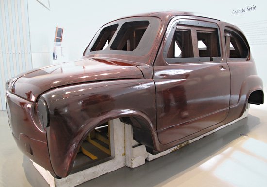It would also remind me of the day I went to the Triennale Design Museum and saw the wooden mold for the Fiat 600, (say-chain-toe), cousin to the Cinquecento, and then walked outside on that sunny day and saw a golden oldie original 500 parked out front. (Ahh, the things that sway decisions!)