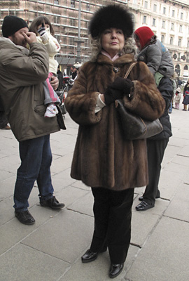 As is common in other big cities around Italy (the rest of Europe, too?), there are “human statues” that pose for money, either with a tourist or without. I’ve seen them in Rome, usually dressed head-to-toe in all white or gold, mimicking the old statuary. This man, however, was clad in silver painted junk, tied and heaped onto his body. He stood stock-still, shimmering. I enjoyed his fresh take on the well-worn statuary vision.